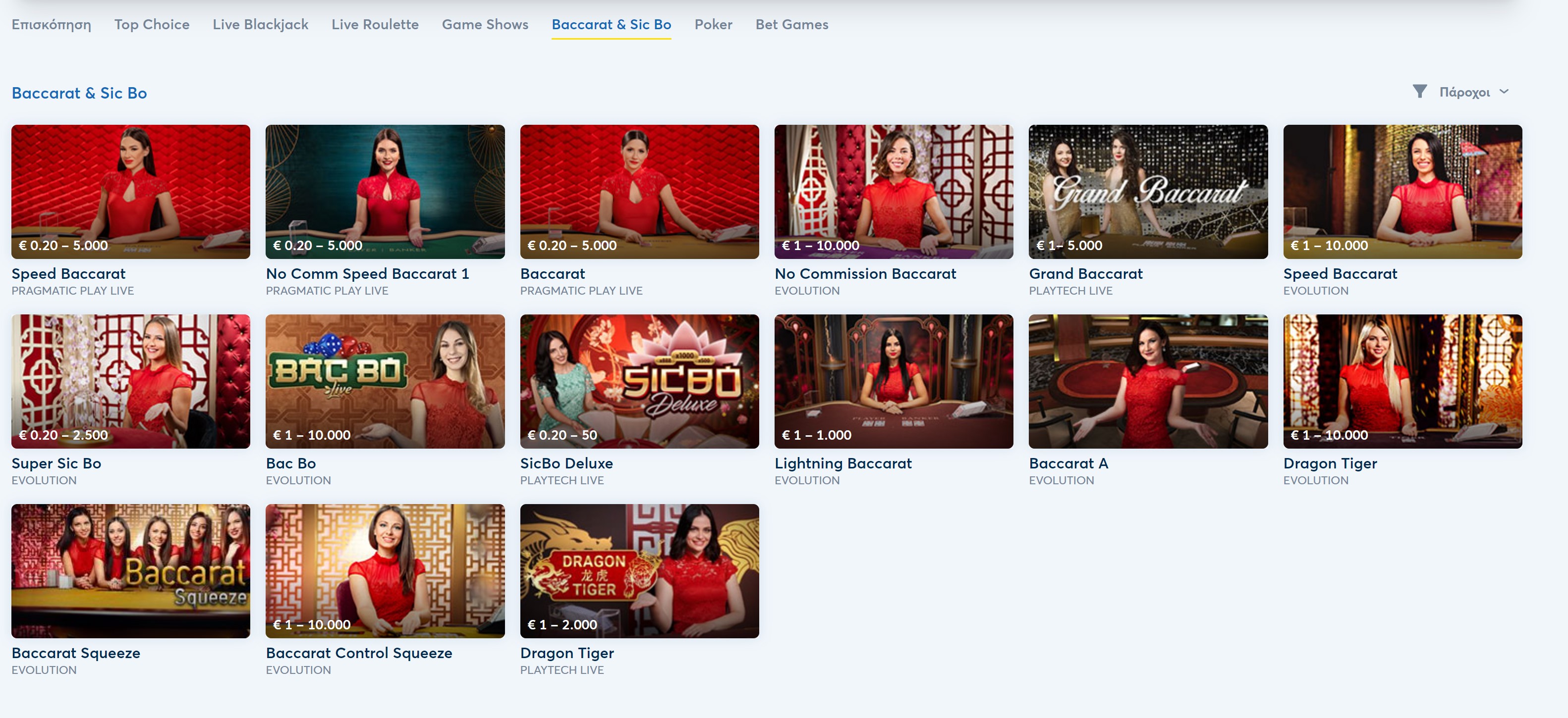 - Πλούσιο Live Casino με 4 μεγάλους live παρόχους (Playtech, Evolution, Pragmatic, BetGames)