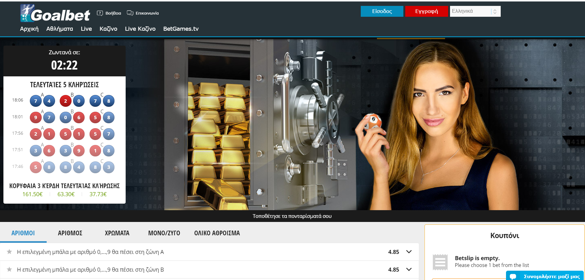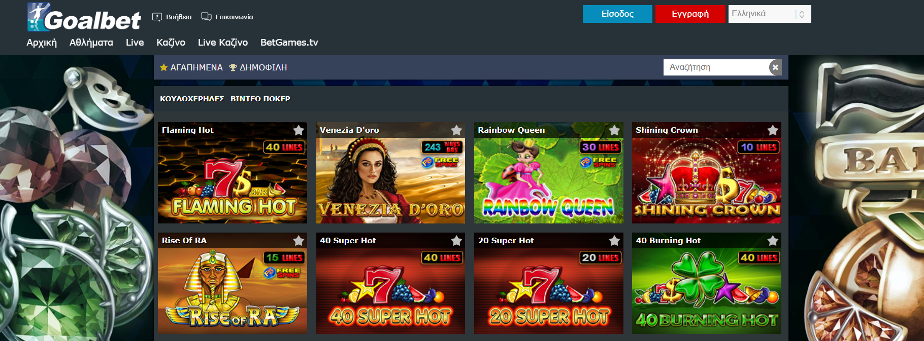 Η πλατφόρμα της Goalbet είναι μία από τις πιο καλές πλατφόρμες live καζίνο στην Ελλάδα καθώς προσφέρει στον χρήστη απόλυτα φιλικό περιβάλλον και του δίνει τη δυνατότητα να βρίσκει γρήγορα αυτό που ψάχνει και να απολαμβάνει άμεσα τα αγαπημένα του παιχνίδια.