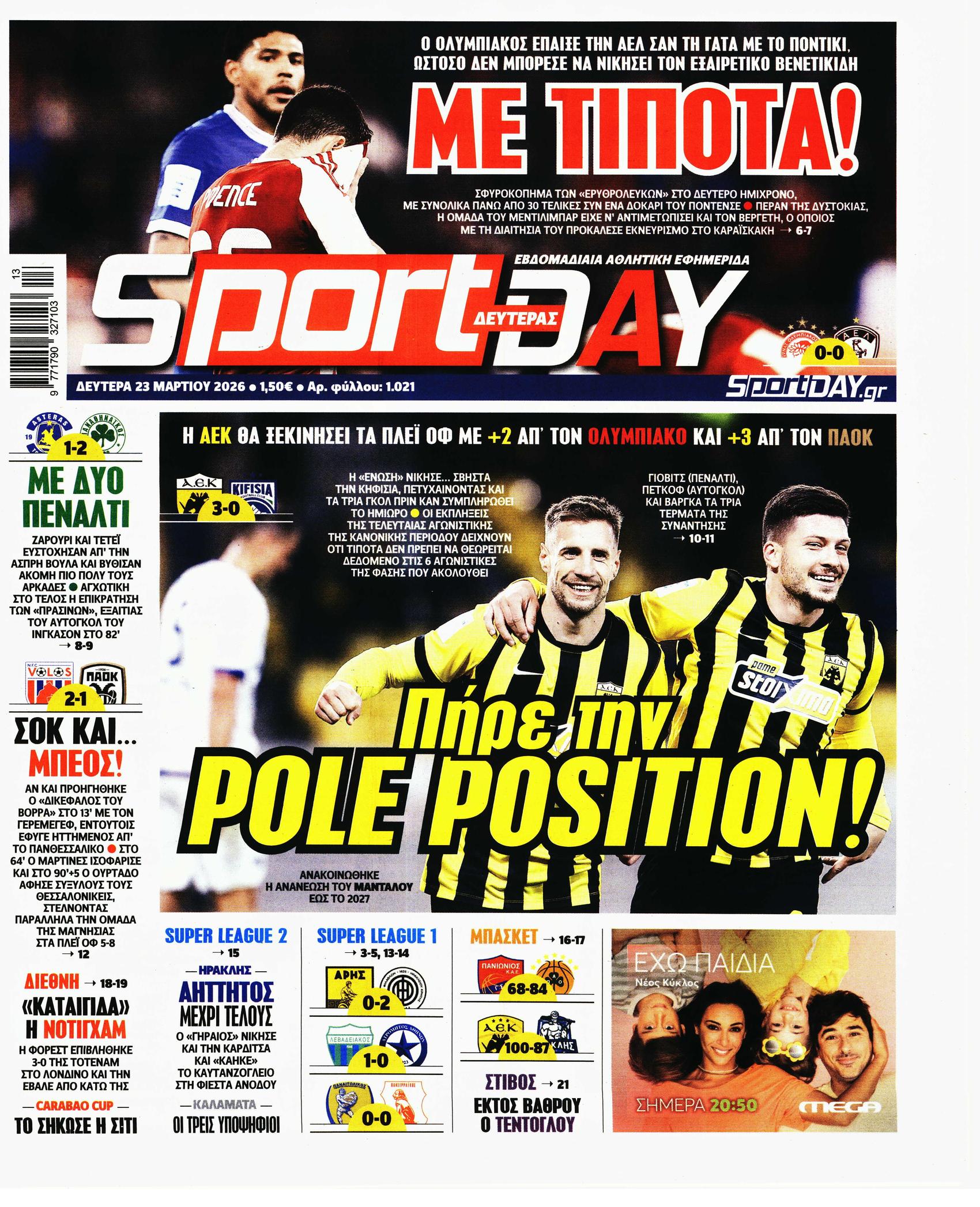Πρωτοσέλιδα 23/03/2026