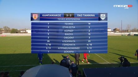 | Ημίχρονο | 0.0% (0/1) | 100.0% (1/1) |